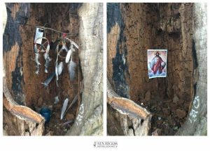 💪 In einem Park wurde in einer großen Baumhöhle eine Art “Altar” mit esoterischen Utensilien beseitigt und durch ein Christkönig-Motiv ersetzt.